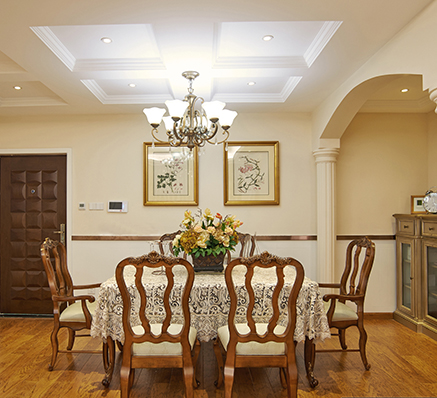 是以中國傳統文化作為背景,在色彩搭配上以黑、紅、為主,室內多采用對稱式的布局方式,格調高雅,造型簡樸優美,色彩濃重而成熟。